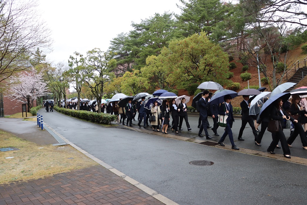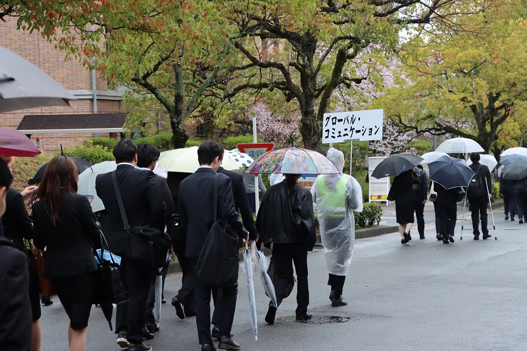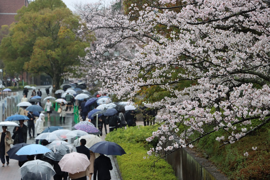 朝からあいにくの雨模様でしたが、熱気あふれるサクラ満開のキャンパスでの入学式となりました。