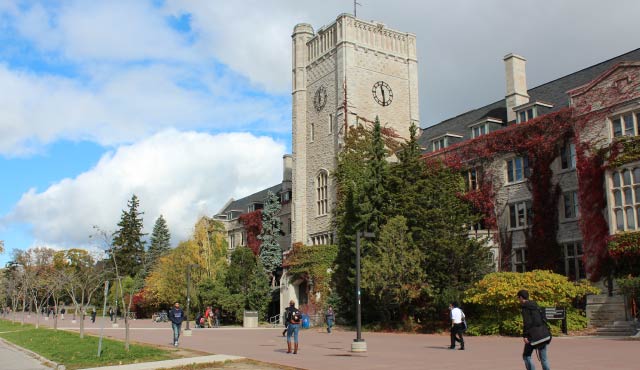 1874年に設立されたOntario School of Agricultureを母体として、1964年に設立された総合大学です。教育、研究ともにトップレベルで、カナダのニュース雑誌Maclean社が毎年発表している大学ランキングでは常に上位のランキングを保つ(「総合」大学ランキングで2016年度4位)名門校です。7つの学部、90以上の専攻を有し、約22,000人の学生が学んでいます。心と身体のバランスを重んじる大学で、学業とともにスポーツをすることも推奨され、クラブ活動も大変盛んな大学です。