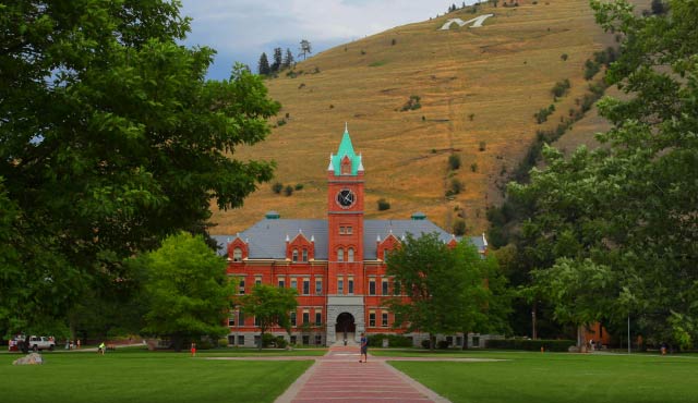 University of Montanaは1893年に設立されました。ロッキー山脈の麓の町Missoulaの中心的存在であり、81ヘクタール(東京ドーム17個分の広さ)の敷地に広がるキャンパスは広々として美しく、とても印象的です。学部、修士課程、博士課程を含む合計170以上のプログラムを提供する州立総合大学で、約15,000人の学生が勉強しています。留学生は約500人で約80の国々から集まります。土地柄、環境学、森林学、自然資源学などの分野で全米に知られていると同時に、コミュニケーション、ジャーナリズム、英語学でも高く評価されています。特にジャーナリズムの分野からは、過去に8名のピューリツァ―賞受賞者を輩出しています。
