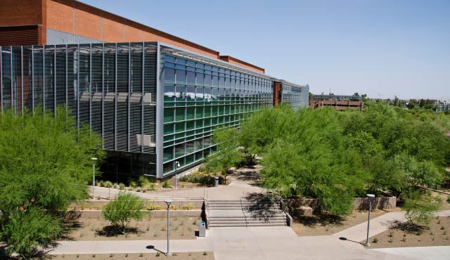 Arizona State University─通称ASU(アリゾナ州立大学)Tempe校はArizona州Tempe市(州都Phoenixに隣接)にあり、1885年に設立されたArizona州最大、最古の州立大学です。ASUのキャンパスは全部で4ケ所ありますが、Tempeのキャンパスには60,000人近くの学生が在籍し、160以上の国からの留学生が学んでいます。ASUの多くの部門はUS News and World Reportによって全米50位以内にランキングし(理工系中心)、これまでにも3人のノーベル賞受賞者、4人のピューリッツァー受賞者を輩出しています。砂漠の景観を生かした広大なキャンパスにはFrank Lloyd Wright(フランク・ロイド・ライト)による有名なホール(グラディ・ガメージ講堂)の建築物もあり、アメリカ南西部の自然と調和した美しい大学です。