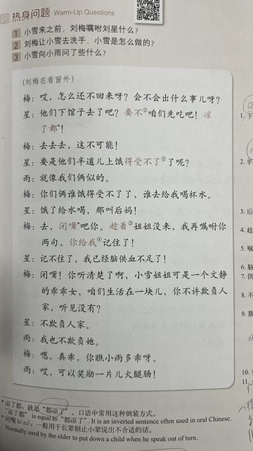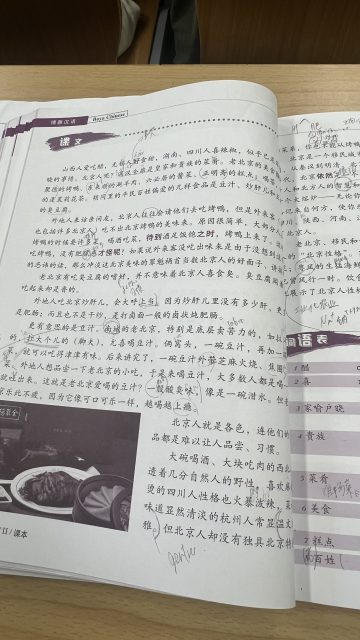 こちらは私の選択した、映画の授業の教科書です。こちらの本で取り扱っている映画は「家有儿女」といって、中国でも有名だそうです。私たちは中国にまだ来たばかりで、映画上での会話のスピードについていくことができない時や、難しい表現を習うこともありますが、先生がゆっくり優しく教えてくださります。