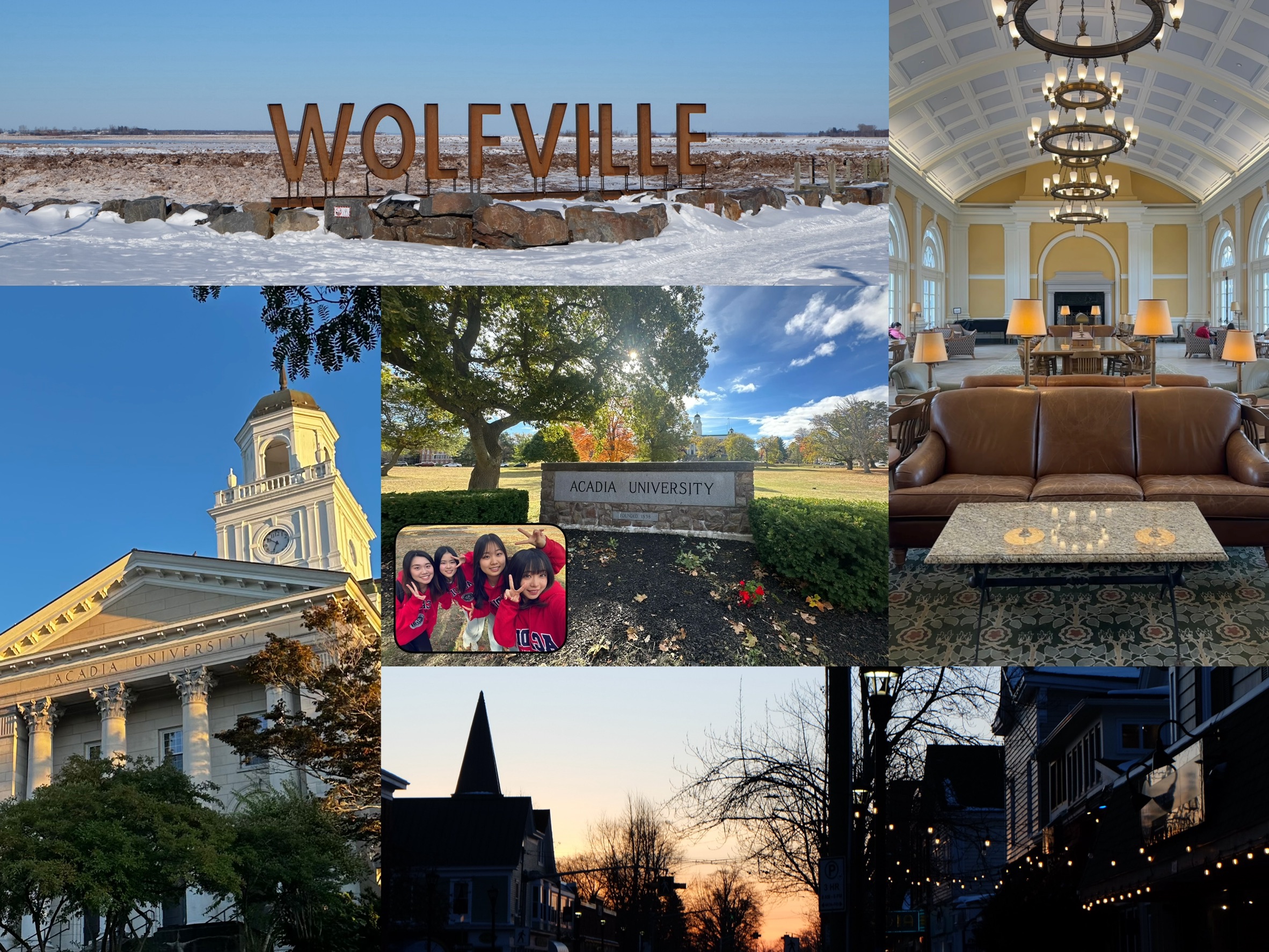 こんにちは!カナダ東部、ノバスコシア州の小さな街WolfvilleにあるAcadia大学からSAレポートをお届けします。2025年度はGC学部から5名が留学していて、留学生活を通してそれぞれが様々な経験をし、学び、挑戦し、楽しみながら成長していると感じます。このレポートでは、そんな私たちの暮らしの様子を5つのテーマに分けてご紹介します!