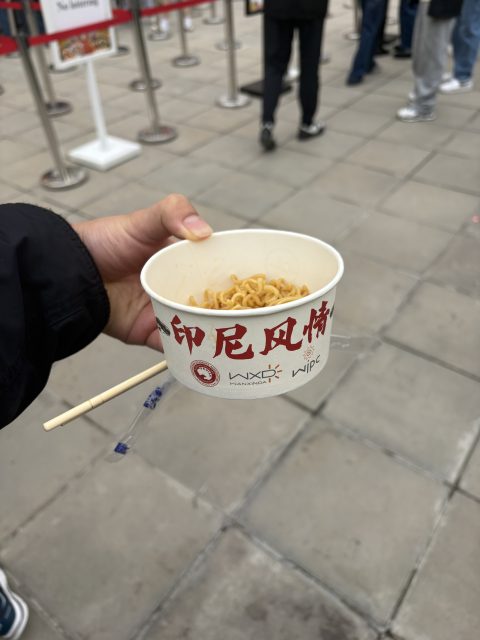 また、文化祭では、各国のブースで、食の文化体験が行われていました。スイスでは、チーズ、アメリカではホットドッグやレモネード、インドネシアではインスタント麺、マレーシアではラクサをいただきました。