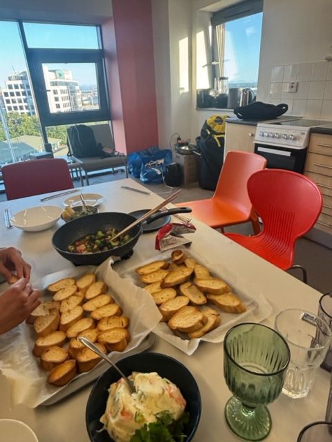 別のフラットへの引越しを挟み現在は2つ目のフラットに住んでいますが、1つ目のフラットではキッチンに関する問題がありました。私以外全員が中国人という環境でしたが、フレンドリーで親切にしてくれ、グループチャットにも招待してくれました。しかし、使った食器が放置されることが多く、料理や食事をするスペースが十分にありませんでした。何度も改善される様工夫しましたが、難しかったです。その経験から、現在の2つ目のフラットでは女子だけのフラットを選びました。ゴミ出しの担当をしっかり決め、全員がルールを守っているので、とても快適に過ごせています。寮の環境は“運”によるところも大きいですが、可能であればsingle genderのフラットを選ぶことをおすすめします!