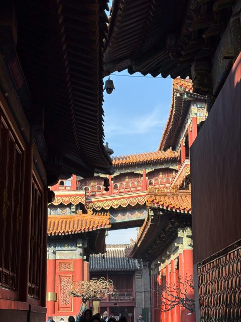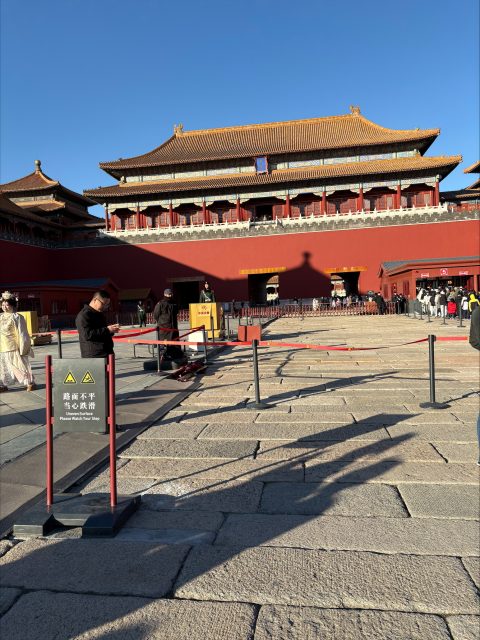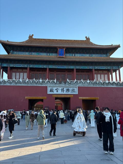 天安門広場は、中国の政治や歴史を象徴する場所であり、実際にその空間に立つことで、北京という都市が持つ重みを肌で感じることができました。天安門から続く故宮では、想像していた以上に広大な空間が広がっており、日本で大学のゼミを通して学んできた北京の重要な歴史的場所を、自分の目で見られたことに大きな意味を感じました。
