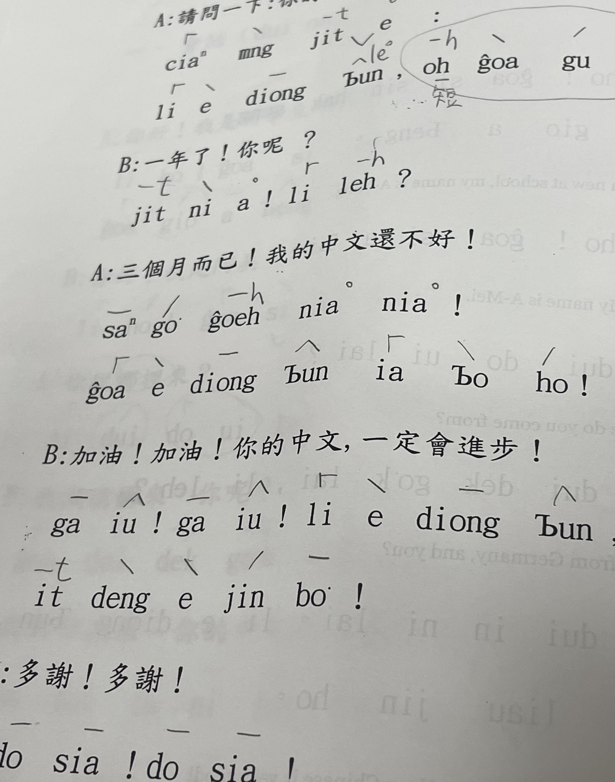 また、私は今学期から語学センターで別途開講されている「文化課」にて「台語課」(閩南語の授業)を履修しています。閩南語には8つの声調と複雑な声調変化があり、中国語と比べて習得が非常に難しいと感じています。しかし、閩南語はとても長い歴史を持つ言葉のため、学習する事によって台湾とは他の地域の言語との関連性も見出すことが出来て、とても面白いです。