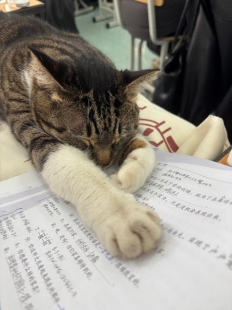 また、キャンパス内にはたくさんの猫が住んでいて、本当にかわいいです。時々、授業中に猫が教室にやってくることもあり、癒されています。